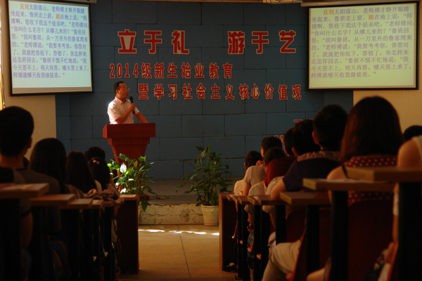 9月23日下午,学院轻工系在阶梯教室召开了2014级新生始业教育。会议由余正锋老师主持,轻工系党总支书记任志杰、轻工系主任卢行芳、新生班主任、辅导员及全体2014级新生参加。