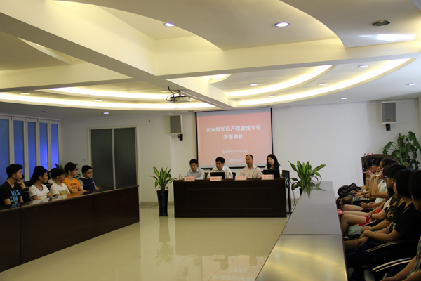 9月22日,我院知识产权学院2014级新生开学典礼暨入学教育在3号楼会议室举行。温州知识产权学院院长陶鑫良,副院长袁真富、叶珺君,轻工系总支书记任志杰及学院教师、老生代表和新生参加了典礼。开学典礼由叶珺君老师主持。
