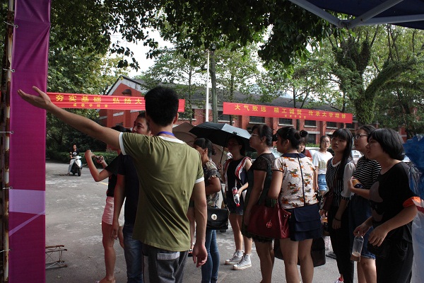 9月9日上午8点,学校6号教学楼一字摆开迎新桌列,一张张崭新的面孔和各位班主任老师组成了一幅生动和谐的师生画面。报到现场,成教学院学生会志愿者热情周到地为新生进行“一站式服务”。经过一上午的忙碌,新生报到工作顺利圆满完成。