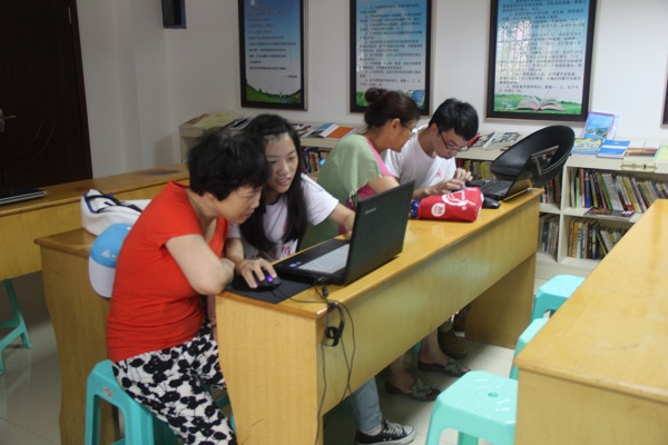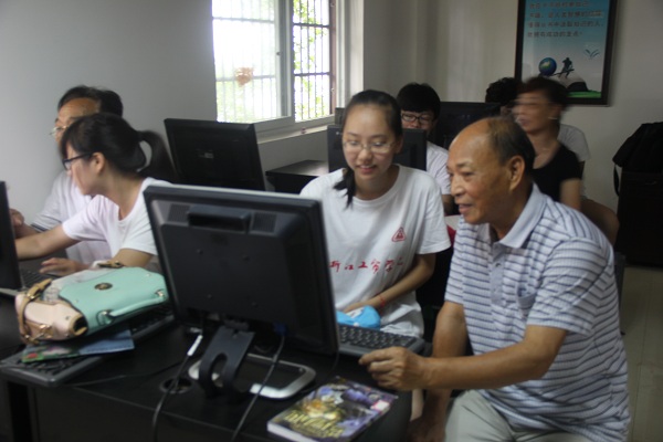 倪建发副院长一行首先来到洪殿社区正在进行“鹿城IT行服务”的活动现场。该活动主要是教社区中老年人和小朋友使用电脑、微信、QQ等,让他们体验到互联网的便利和快乐。同时我们学生还主动上门为老年人维修电脑、安装需要的软件等。今年已经是该项活动连续举办的第三年,受到了社区老人和小朋友的欢迎。倪副院长与队员们亲切交谈,详细询问队员们的工作情况并提醒大家注意防暑。