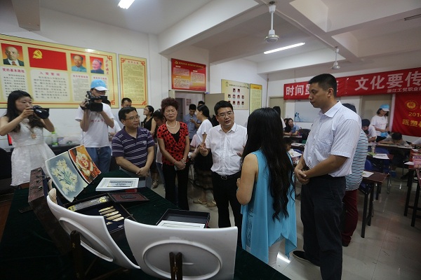 7月4日下午,共青团温州市委书记王忠宝、副书记沈醒等一行专程来到我院暑期社会实践队“瓯塑之光”的活动地点——鹿城绿园社区文化大礼堂,看望正在开展暑期社会实践的队员们。我院副院长倪建发、鹿城区团区委副书记黄旋旋、团市委学少部副部长池腾飞、绿园社区居委会主任肖春华、学院团委副书记陈碎雷等陪同走访。在绿园社区文化大礼堂,王书记饶有兴趣地观看了瓯塑的制作工艺和小朋友们的学习情况,并详细询问了我院瓯塑暑期社会实践队的活动情况。指导老师和实践队员们向王忠宝书记一行汇报了瓯塑公益行进社区的实践成果以及队员们在实践期间的感受和体会。倪建发副院长代表学院对团市委对我院暑期社会实践活动的关心与支持表示感谢,并勉励我院社会实践队员们发扬“大气致远精工诚贸”的校训精神,在实践中长才干、作贡献,为暑期社会实践和青春交上一份圆满的答卷。