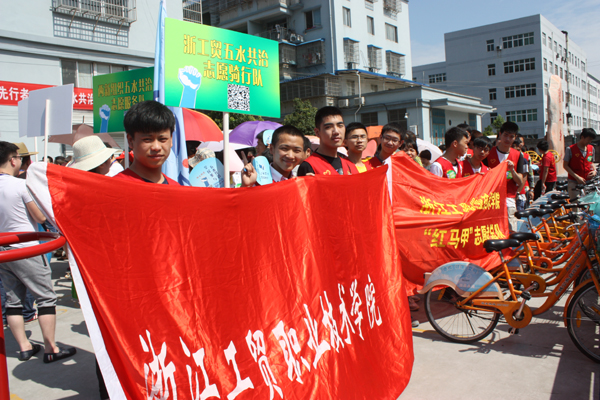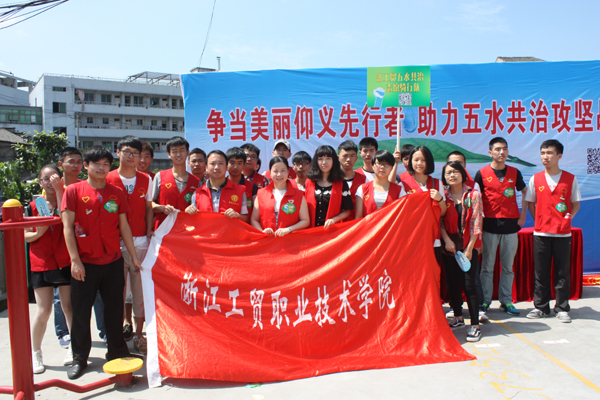 仪式结束后,学院红马甲、弘恩行大学生志愿者兵分两路,分别参与公共自行车骑行沿河宣传和步行沿河实地宣传、“随手拍”监督以及垃圾清理整治活动。我院大学生志愿者参与五水共治活动展现了工贸学子勇于担当、服务社会的良好形象,也受到了当地社会群众的好评。