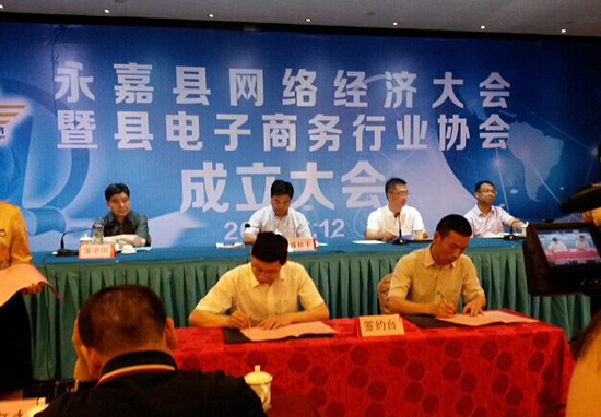 近年来,永嘉县将网络经济作为战略性、先导性产业重点培育,作为“一号新产业”来抓,积极实施“电商换市”,率温州全市之先成立县网络经济服务局,出台了具体扶持办法,县财政每年安排不少于500万元的电商发展专项资金,全力推动电商换市工作,取得了明显成效。该县相继被评为全国网购第四潮县、“2013年中国电子商务发展百佳县”、2013年度浙江省“电商换市创新样本”,诞生了全市首个教玩具“淘宝村”;2013年全县网络销售突破50亿元,今年1—4月网络经济销售额约25亿元,同比增长50%。