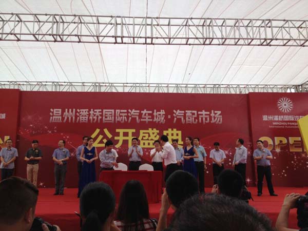 5月31日,温州潘桥国际汽车城汽配市场举行公开盛典。市委常委、副市长、统战部部长陈浩,温州市安监局局长江少勇,瓯海区委书记厉秀珍,瓯海区区长彭立华等领导出席仪式。据悉,建成后的该市场,将是浙南闽北集汽车配件、汽车4S店、新车展示厅、二手车交易厅、汽车装潢店等“一站式”服务的汽车市场综合体。