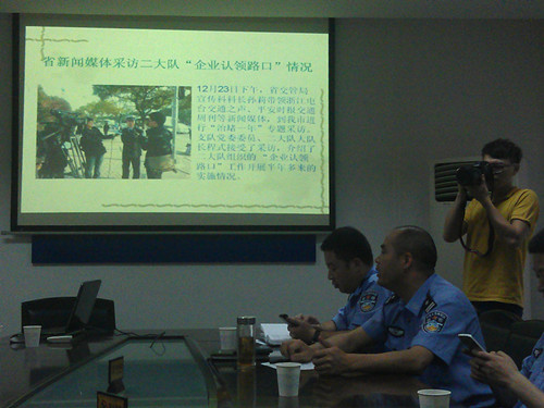 5月29日下午,汽机学院绿色啄木鸟志愿队的两名志愿者代表与李艳老师一同前往温州市交警二大队,参加“拒绝中国式过马路”交通劝导活动一周年总结大会,参加本次会议的还有其他8家合作单位。