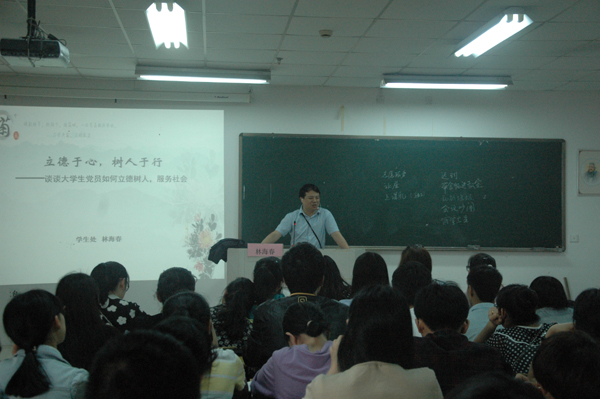 学工部部长、学生处处长林海春老师为大家讲解了立德于心,树人于行的话题,谈谈大学生党员如何立德树人,服务社会的话题,在场学员都受益良多。