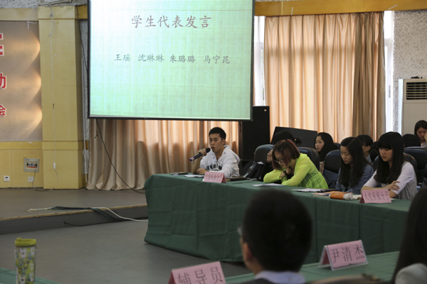 本次活动分为四个阶段进行。首先徐辉老师在致词中阐述了“五四”运动的历史意义及对中国社会发展变革带来的影响。随后播映了“五四”运动回顾系列视频;在热烈的掌声后,人文系的入党积极分子代表纷纷发言,分别从是“五四”的历程、“五四”的影响以及如何弘扬“五四”精神三个方面表达了继承发扬“五四”精神的体会感想。在随后阶段,同学们欣赏了精彩的青春诗歌朗诵、幽默讽刺小品和法语歌曲合唱,并进行了“五四”常识与学院发展相关知识竞答,令全场气氛达到高潮。最后系部还对奖学金获得者进行了表彰颁奖。