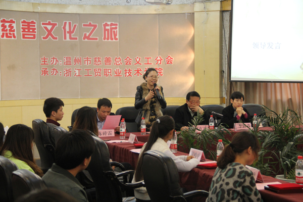 近日,雷锋月系列活动之“慈善文化之旅志愿服务研讨会”在多功能厅举行,温州市慈善总会副会长义工分会会长项有连,温州市慈善总会义工部副部长李碎春,附二院读书协会会长郑文娴,我院8位优秀慈善义工及各分院(系)的学生代表参加了本次研讨会。