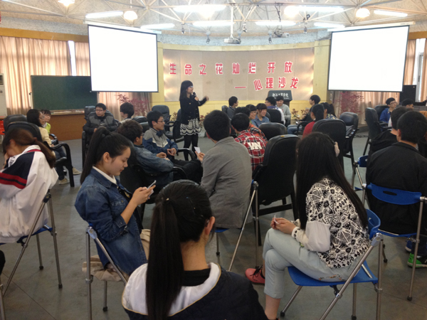 心理沙龙是一种形式自由活波、参与性比较强的主题心理讨论会,是同学们比较喜欢的一种活动形式。活动以“根据成语找伙伴”为开端进行团队建设,使得同学们消除彼此的陌生感,敞开心扉参与讨论。接着大家就“生命的特性”,“我的五样”,“如何过好大学生活”,“让生命之花灿烂开放”等问题进行了分享与讨论。在讨论中间还穿插“生命的颜色”心理测试以及趣味心理游戏,同学们积极参与,畅所欲言,现场气氛活跃。活动结束之后,同学们纷纷表示,举办这样的活动非常有意义,不仅对生命有了更进一步的认识和了解,同时认识了更多的朋友,锻炼了人际沟通与交流能力,希望今后能举办更多这样的活动。