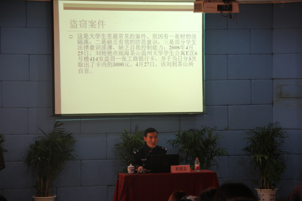 2月25日,为加强大学生安全意识,提高安全防范能力,学生处、保卫处联合举行大学生安全教育系列讲座,来自温州市公安局、温州市消防大队、温州市蒲鞋市派出所的警官为全院1800余名大一新生普及安全相关知识。