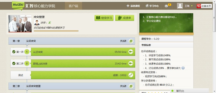 其基本学习形式和步骤为:由学院将参加学习的学生信息上传,学生登录学校二级域名()自主学习。第一次使用,先进行学号注册激活, 注册完成后学生就可以进行选课,可以根据自己的时间。登录学习平台,选择课程进行学习。学习形式为观看教学视频,并完成相关章节后的作业并参与讨论、提问。完成所选课程的所有章节视频的学习、作业及在线考试后,成绩合格的可以获得相应课程的学分。网络课程最终课程考核方式将采取过程性管理考核模式,课程最终考核成绩由观看视频(45%)、完成作业(20%)、参与讨论(5%)和在线考试(30%)四部分组成。根据上述考核方法核定的综合成绩达到60分以上者,可以获得相应课程的小学分,所获得小学分进入学分银行。当所选修课程模块中所有“通过课程”的学分数之和大于或等于该课程模块可申报学分数后可以进行学分申报,申报通过后经教务部门审定可获得本课程模块的学分。