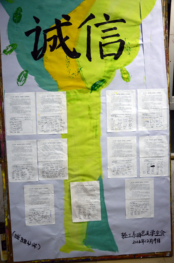 希望通过此次系学生会的倡议活动,让同学们敲响警钟的同时,并提高同学们备战期末的积极性。诚信考试,轻工在行动!