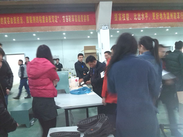 12月1日,在学院轻工系实训基地,温州市皮革化工商会组织了皮革化工行业企业举行了首届“鞋面整式、黏胶剂”岗位比赛。此次比赛得到了温州市人力资源和社会保障局、市总工会、市工商联、学院轻工系等单位大力支持,吸引了四十余家企业百余名岗位能手参赛。