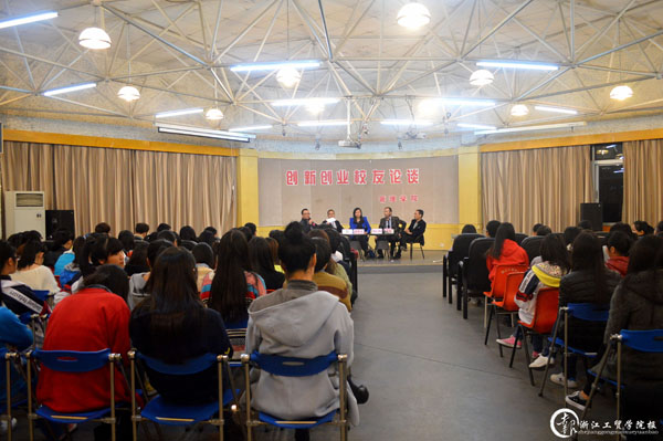 论坛现场座无虚席,充分体现出了同学们对创新创业话题的浓厚兴趣。张勰副书记给嘉宾们介绍了工贸管理学院的发展历程及专业情况,希望校友们在创业创新及毕业生就业等方面给予学弟学妹们一定的帮助,也对校友们给予了美好的祝愿。紧接着就是四位校友的成功创业经历分享。爱乐达公司总经理刘达,他向大家讲述了他的艰苦创业经历,并告诫同学们要放低姿态,在这个竞争时代,同学们应该注重心态的调整以及培养专业和提高自己的知识水平。重庆瑞天电器有限公司总经理王天波,他告诉同学们刚出社会,要能从基层做起,多做准备,克服困难,坚持“做好人,不做坏人”。目前在华誉资信评估公司任职的金玲丽,她在工贸学习的时间最长,与工贸的感情也特别深。她坚持自主创业,毕业的理想便是自己做老板,还告诫大家文凭只是个敲门砖,自身能力才是最重要的。最后一位是杨祖圭,他是管理学院的第一位学生会主席。他告诉同学们他是怎么从一个不起眼平凡的小干事变成后来的学生会主席,正是因为他踏实、肯干、能吃苦,并且有明确的目标。他向大家强调了兴趣的重要性,告诫大家只有态度和兴趣才可以把一件事做到最好。第二环节是,由在场的同学们向四位校友提问,同学们踊跃积极的提问让会场进入高潮。