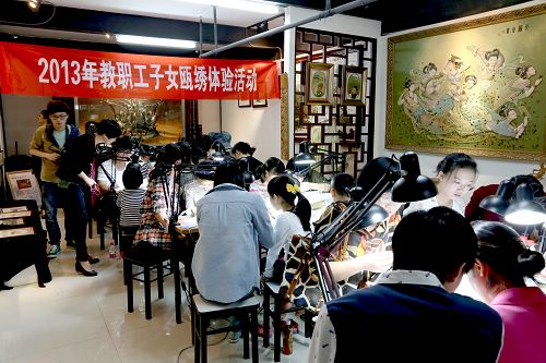 学院工会组织教职工子女体验非遗文化——瓯绣