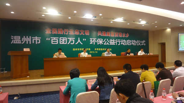 10月26日早上9点,由市环保局联合共青团市委主办,主题为“全民实践生态文明,共建美丽浙南水乡”的温州市“百团万人”环保公益行动启动仪式在市人民大会堂举行。我市首批环保公众评审员、市民环保监督团和环保讲师团成员及我院“绿丝带”志愿者参加了此次启动仪式。
