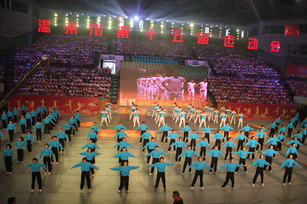 10月16日晚,温州市第十五届运动会在市体育馆开幕。四年一次的市运会是我市水平最高、规模最大的综合性运动会。第十五届市运会参赛运动员共8843人,是历年来规模最大、参赛人数最多的一届。