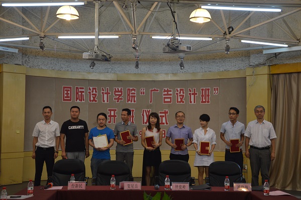 信息传媒学院副院长潘修强对本届广告设计班的课程设计、师资安排进行介绍。思珀公司总经理钟俊岭阐述了个人对文化产业的发展体会,承诺将带领广告设计班的学生亲身参与公司的实际项目,提升学生广告设计实践技能,并介绍了本届广告设计班教学的各位名师名家。信息传媒学院副院长潘修强和思珀公司总经理钟俊岭代表合作双方签订“广告设计班”的开班协议。贺星岳院长与钟俊岭总经理为授课教师颁发聘书。