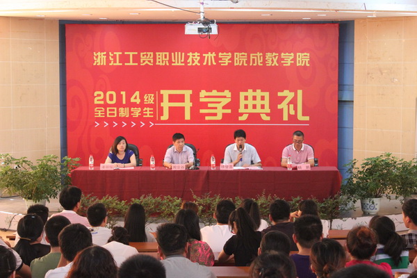 9月4日下午,成教学院在1号楼阶梯教室召开了“成教学院2014级全日制新生开学典礼”。出席本次开学典礼的有成教学院常务副院长周宗谷,成教学院党支部书记、副院长徐登喜,教务部主任杨鹏,学生管理部主任潘丽瑶,2014级新生和新生家长们共同参加了本次典礼。会议由徐登喜主持。