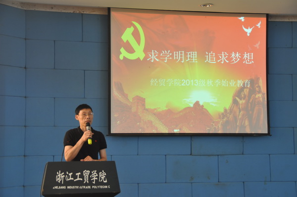 9月15日下午,经贸学院在阶梯教室举行以“求学明理 追求梦想”为主题的2013级新生始业教育暨开学典礼。此次新生始业教育根据专业分两场进行,2013级共640余名新生参加会议。经贸学院党总支书记项光春、经贸学院院长汪焰分别讲话,并对2013级新生提出具体要求。经贸学院全体行政人员和2013级各班班主任出席,会议由经贸学院院长助理丁长峰老师主持。