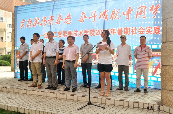在出征仪式上学院副院长倪建发作了动员讲话,在我院创新创业教育年主题指导下今年暑期社会实践有“实践思路更科学、实践内容更丰富、实践针对性更强”等3个特点。他向参加暑期社会实践的老师和同学们提了三点希望和要求:第一、希望全体实践队员一定要在实践活动中坚定爱党信念,进一步坚定跟党走中国特色社会主义道路的理想信念,通过实践激扬青春志,通过奋斗成就“我们的中国梦”;第二、弘扬学院创新创业的理念,深入社区、农村、企业中去,为地方经济、社会和文化服务,在社会基层锻炼中磨练意志品质,完善自我,增长才干、磨练意志,为今后的学习和发展奠定坚实的基础;第三、提高安全意识,确保社会实践安全有序。