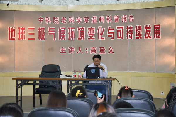 高登义教授主要为我们讲授了地球三极气候环境变化与可持续发展问题,他用幽默生动的语言与在场师生分享了他在地球三级科学考察中的故事及知天知己体会,分析了地球三极气候环境变化与人类关系(全球变暖原因及其与南极冰盖变化、北极气候环境变化与生物生存之道)等。潘习哲教授介绍了自己任站长期间与多国遥感卫星运行机构进行交流与合作的经历,为师生介绍了国际航天遥感发展状况等情况。在报告尾声,现场进行了很好的互动与交流,老科学家们对师生提出的问题给予了生动详细的解答。