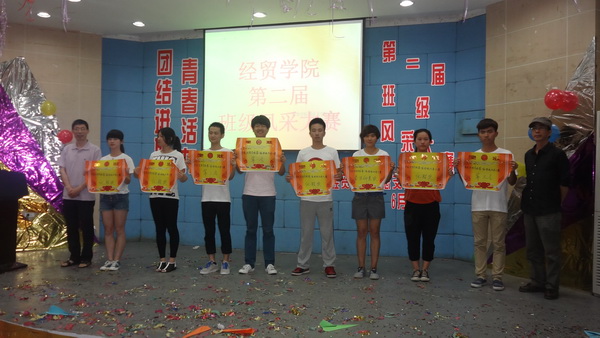 6月6日晚上,经贸学院第二届班级风采大赛决赛在阶梯教室隆重举行。参加决赛的2012级8个班级是前期由15个班级参加预赛脱颖而出的优胜班级。决赛邀请了人文系党总支副书记徐辉,经贸学院党总支书记项光春,辅导员向政、白福川和鲁湾湾等老师担任评委。参加决赛8个班级的全体学生及班主任参与班级风采大赛的表演和展示活动。