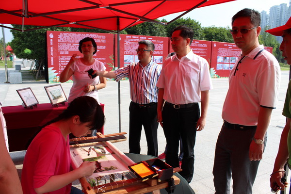 我院四个项目的展示与宣传活动很好地溶入到了“中华长歌行——温州梦·端午情”文化活动的大环境中,吸引了许多市民的兴趣,他们有的驻步聆听,有的细心观摩,还有的虚心咨询,收到较好效果。