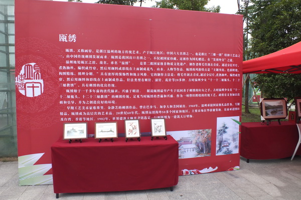 我院区域文化研究中心代表“刘伯温传说”、瓯绣、瓯塑及温州龙舟文化参与了此次活动,负责展示和宣传这些极富温州区域色彩的文化遗产项目。“刘伯温传说”以故事演绎的形式展开,通过极富吸引力的舞台表演,向观众展现温州历史名人刘伯温的卓绝智慧及“刘伯温传说”本身的魅力。瓯绣、瓯塑模块以作品展示、现场讲解、技法演示的形式,向民众展示了瓯绣、瓯塑这两大温州传统工艺历史传统、文化内涵及技法特色。温州龙舟文化模块以宣传图板的形式,介绍了温州龙舟文化发源、历史演变及温州龙舟文化知识。