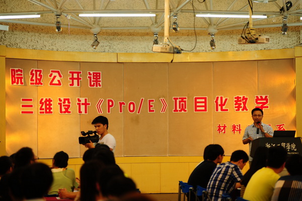 为贯彻落实我院“创新创业”年教学改革精神,材料工程系根据自身科研服务教学的特点,进行了“项目化”教学改革的尝试。5月27日下午,华学兵老师在多功能厅举行了面向全院教师的《三维设计Pro/E》课程项目化教学的公开示范课。院长贺星岳、副院长张俊平参加了此次公开示范课。