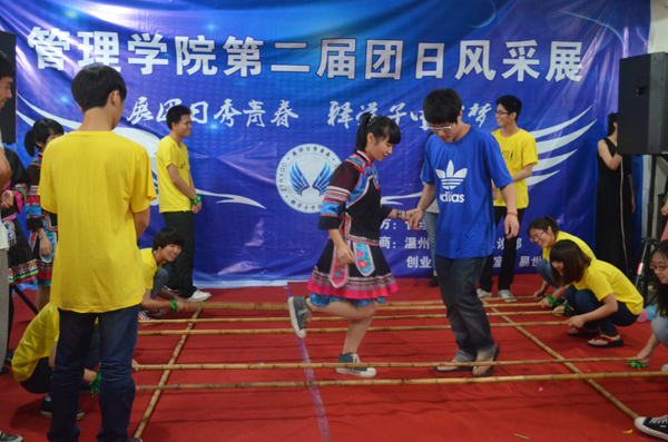 第二环节为5月13日在阶梯教室举行优秀团支部展示。最先出场的是导游1202班的同学们,他们的手语表演,吸引在场的同学。之后各班按序展示,信用管理1201班的灯光剧、会计1201班的太极以及算盘舞、人力资源1201班的双截棍表演以及导游1201班的大合唱,赢来了同学们热烈的掌声和欢呼声。根据各班综合表现,评出了酒店管理1202班、导游1201班、会计1208班、会计1201班、人力1201班为“管理学院2011-2012学年优秀团支部”。