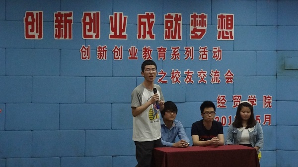 5月16日晚经贸学院以“创新创业 成就梦想”为主题的校友交流会在阶梯教室拉开帷幕。此次交流会以电子商务和物流管理专业为主,邀请了2009届电子商务专业毕业生、学院创业之星、温州宏雷电子商务有限公司总经理叶金盘;2012届电子商务专业毕业生、虹鹰电子商务服务有限公司总经理任虹琴;将于今年毕业的电子商务专业学生、温州市蓝标电子商务有限公司总经理厉琦以及温州易世文化有限公司总经理余秀斌等4位校友嘉宾参与交流。经贸学院2011、2012级电子商务和物流专业的共250多名学生参加了交流活动,电子商务教研室主任成荣芬及各班主任出席交流会。