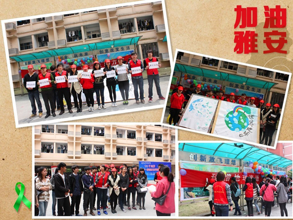 世界地球日虽然只有一天,但重要的是把保护地球的理念深入人心,让大家从小事做起。相信通过此次活动的宣传,这颗种子已经扎根在同学们的心中。在活动的最后,成教学院工作人员共举“雅安,加油!”的牌子,把最美好的祝福,传到远方的雅安。