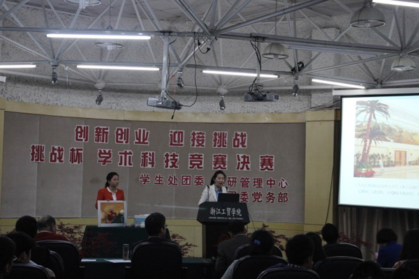 环保产品已成为如今的热捧商品。第一组选手一上场就介绍了“炭吸附鞋”,主讲陈燕梅自信满满地介绍了“炭鞋”各种新型功能,比如杀菌,保健等。而“文化产业”也是我国近年来所出现的经济发展的新兴产业,陈婷同学结合学院瓯塑基地创新发展出的瓯塑,“油料包裹,防止泥与外界空气接触,延长保存时间”,是该产品的新颖之处。答辩环节,各队面对评委或婉转或犀利地提问,竭尽全力给以最佳作答,期间不乏很多精彩的回答,博得评委的一致好评。经过两个半小时的激烈角逐,最终潘灵吉同学拿下了比赛的第一名,同时也产生了2个二等奖,3个三等奖以及1个最佳表现奖。最后学术委员会主任邱开金教授对此次决赛作了点评,肯定同学们课外期间在学术科技研究方面的努力,同时也指出了作品需要改进的地方,希望指导老师们能进一步加强指导,鼓励同学们在学院提供的创新创业平台上锐意创新、迎接挑战。