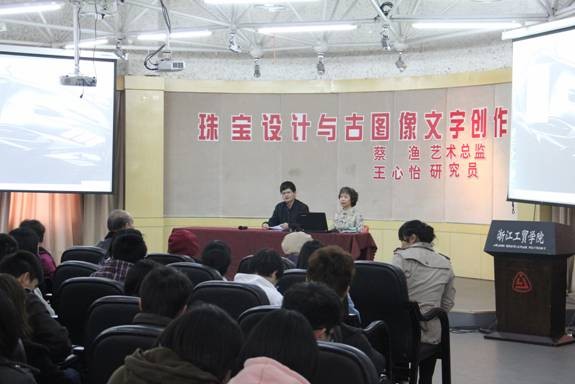 本次讲座上,张俊平副院长、轻工系主任卢行芳分别代表学院和轻工系接受了台湾艺术家的赠书。王心怡研究员从古图像文字方面解读了传统的文字艺术,蔡渔艺术总监则从珠宝设计的角度诠释了传统的文字艺术在珠宝设计中的创新使用。两位艺术家在讲座结束后分别与到会人员作了详细交流,并给予全面而细致的解答。通过讲座,让我系师生对台湾艺术家热情创作精神有了进一步的认识,把中国传统文化精髓运用到现代艺术设计当中,给我系师生留下很深的印象,同时也给我系师生在创造艺术作品中提供了创新思路。