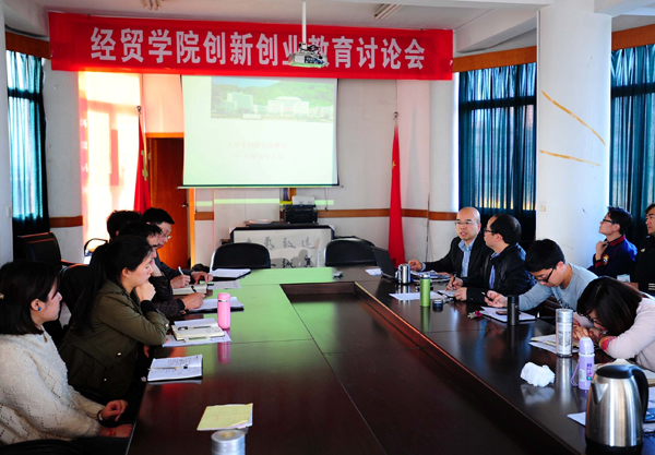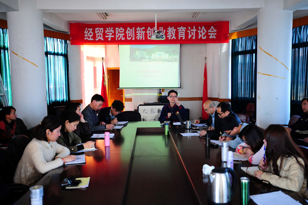 为了贯彻落实2013学院创新创业教育年的有关精神,将创新创业精神贯穿到日常教育教学改革中去,经贸学院于4月12日下午在六楼会议室召开创新创业主题研讨会。会议由经贸学院院长汪焰主持,经贸学院全体老师参加了本次会议。