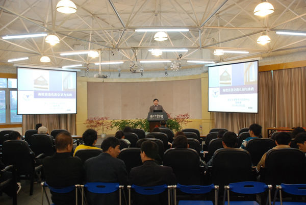 讲座上程艳旗副主任介绍了高校信息化的发展现状,以及浙江大学信息化的实践与探索,并与到会人员交流了自己在信息化工作中所获得的认识和体会,对到会人员所提出的问题给予了全面而细致的解答。