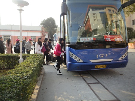 在上车点,来自学院的阳光志愿者也舍弃了早日回家团聚的机会,留在学校接受咨询、帮助返乡学生搬运行李、送站等,为寒冷的冬日增添了阵阵暖意。来自管理学院的戴同学说:“往年回家都是自己一个人拖着大包小包挤公交车,非常辛苦,今年学校给我们安排了专车,方便多了,学校的考虑非常人性化。”