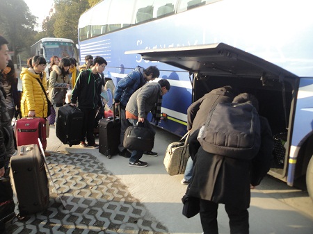 随着期末考试的结束,学生陆续开始返乡与亲友团聚。但是学生返乡时需要携带大量行李,加之天寒地冻,温州火车南站、双屿客运中心等站点路途遥远,如果乘坐出租车,花费又太高。正是看到了学生的需要,在学生大量返乡之际,学生处与各部门通力合作,安排了三辆大巴车,开通了学院至温州火车南站、学院至温州火车站、学院至双屿客运中心三条线路,免费送学生返乡。