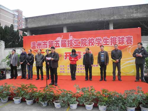 2011年12月8日上午,由温州市人力资源和社会保障局主办、浙江工贸技师学院承办的温州市第五届技工院校学生排球赛在我校的校园内拉开了帷幕。温州市人力资源和社会保障局副局长董旭辉发表了开幕讲话,裁判员代表和运动员代表宣誓,最后由董旭辉副局长宣布比赛正式开始。