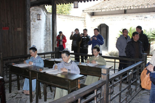在芙蓉古村,参观书院,体会“耕读文化”中的“读”
