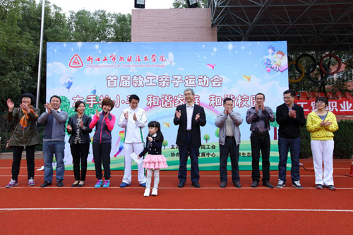 11月17日我院首届教职工亲子运动会在学院操场隆重举行。本次亲子运动会得到学院党政领导的重视和大力支持,学院党委书记何向荣教授、院长贺星岳教授、工会主席庄秀丽和团委副书记陈碎雷老师出席了开幕式。活动由学院工会主办,体育发展中心和团委协办。