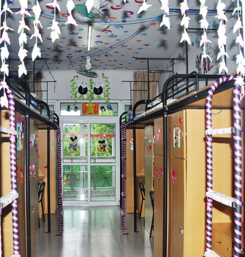 所有获奖寝室在学校红歌会上得到学院领导的表扬和全校师生的肯定。如获奖D636:欢迎走进D636寝室,一个未来鞋类设计师的王国。鞋子是宿舍里闪亮的精灵,书柜旁、开关上、穿衣镜上随处可见各种鞋类物品和图案。