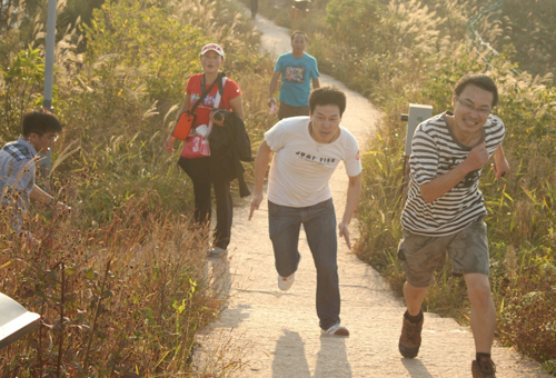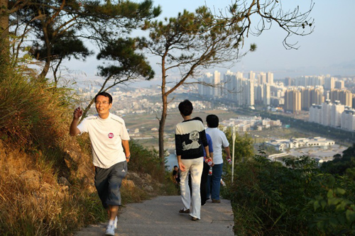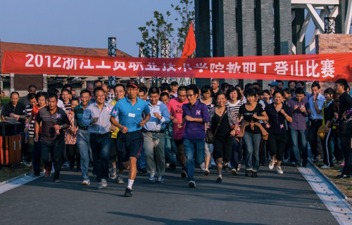 十月二十六日,适逢季秋好时节,天朗云淡,宜登高远眺。下午三点半左右,杨府山公园东广场上,三百余人聚集,秩序井然,或说或笑,心情舒畅。这里即将开始2012年浙江工贸职业技术学院教职工登山比赛。