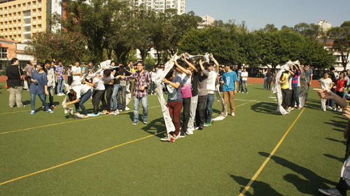为了丰富新生的校园生活、培养新生团队合作精神和班级凝聚力。信息传媒学院于10月13日上午在学院操场举办了“青春激情共飞扬,欢乐周末我最大”活动。此次活动分别设有“拔河赛”、“踩地雷”、“超级蹦蹦跳”、“搭桥过河”、“无敌风火轮”、“珠来珠往”、“抛绣球”七项赛事。