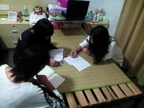 图为博洋班企业党小组在寝室召开组织生活会