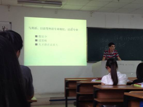 活动中,人文系主任尹清杰以富有哲理的语言阐述了人文理性、人文思想与大学生成长的关系,简要介绍了人文系2012级应用法语专业学生在未来的三年学习生涯中的相关安排与要求,并进行了开展学生职业生涯规划设计及教学相关工作的组织动员。