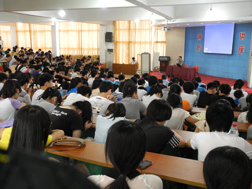 崔老师用真实的案例、生动的演说,浅显易懂地介绍自己多年以来从事维护校园人员与环境安全的知识。他教导同学们如何避免发生意外灾害和自然灾害;当意外灾害和自然灾害来临时要注意哪些问题,做好哪些预防措施;一旦发生险灾该采取怎样的方法自救救人、如何逃生;对教室、寝室要做到哪些防范才能避免安全隐患的产生;对自身的财物要如何保管,电器该如何安全使用等等,其中不乏平时同学们都掉以轻心的生活常识和生活细节。在这次讲座中,崔老师的话为同学们在学习生活中的麻痹大意敲响了警钟,大大提高了同学们的消防安全意识和自我救护能力。
