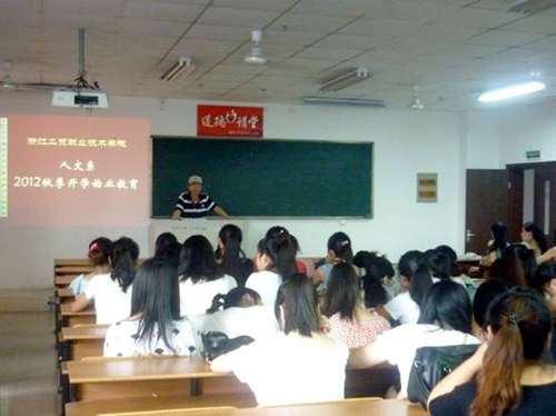 人文系党总支副书记徐辉在始业教育中对学生进行了社会责任感、使命感教育与爱国、集体主义及公德诚信等教育。他认为作为老生,全体学生就要为将要踏入的社会工作做准备,在学习中逐渐增强职业素质与社会公民责任感。一是要学习和增强守时、守信、守纪、合规、合法的自觉性;二是要学习和增强勤奋学习、勤奋工作和必备的耐心、恒心等基本素质;三是要学习和增强文明、礼仪及所具体表现出来的气质、风度等修养;四是学习和增强必要的人际交往能力和语音口才表达能力,这是一个合格和成熟职业人的基本素质要求。