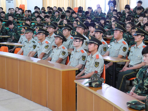 9月13日上午,我院技师学院2012级新生开学典礼暨军训动员大会在1号教学楼阶梯教室召开。出席此次典礼的领导嘉宾有海警二大队政委吴伟东、技师学院副院长程树存、全体12级新生及班主任和13位部队教官。